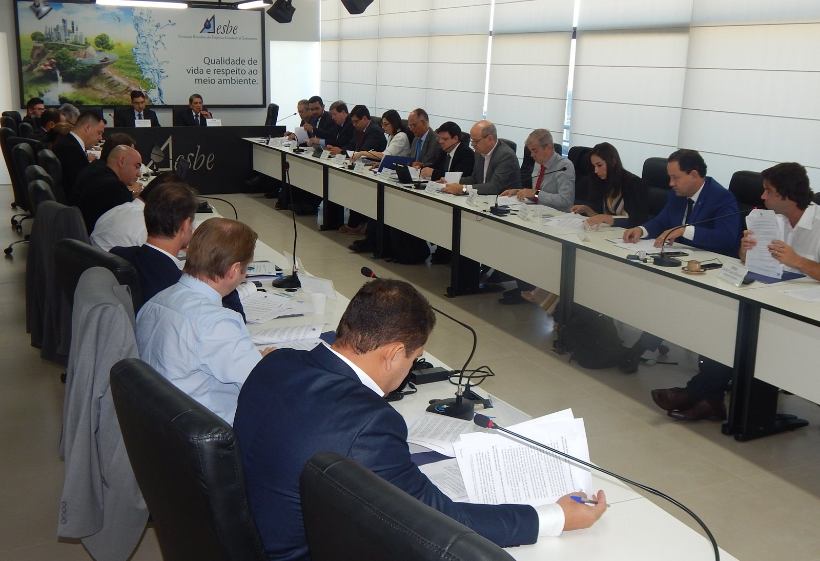 Na manhã desta segunda-feira, 6, os presidentes e representantes das Companhias Estaduais de Saneamento se reuniram na sede da Associação Brasileira das Empresas Estaduais de Saneamento (Aesbe) para discutir e tirar um posicionamento conjunto sobre as mudanças implementadas no texto da Medida Provisória 868, apresentadas pelo senador Tasso Jereissati (PSDB/CE), relator da Comissão Mista que analisa a MP. O posicionamento da Aesbe servirá para orientar os Governadores sobre o assunto.