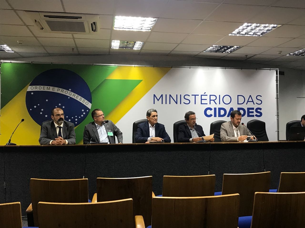 O secretário executivo da Associação Brasileira das Empresas Estaduais de Saneamento (Aesbe), Ubiratan Pereira, e o assessor jurídico da entidade, Antonio Jr., participam na tarde desta terça-feira, 28, da 1ª Oficina Nacional sobre o Guia de Referência para a Regulação do Saneamento no Brasil. A capacitação ocorre até às 18h desta terça, no auditório do Ministério das Cidades, com a participação de cerca de 70 pessoas.
